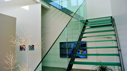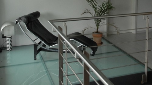 Escaliers en verre, barrières en Inox brossé, accessoires en aluminium
